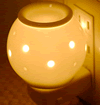 正面から見ると、ソケットが見えない円形です。明かりをつけると夜空とネコのやさしい光がお部屋を照らします。シンプルだけど、どこか可愛いネコのお月見アロマライト。 |